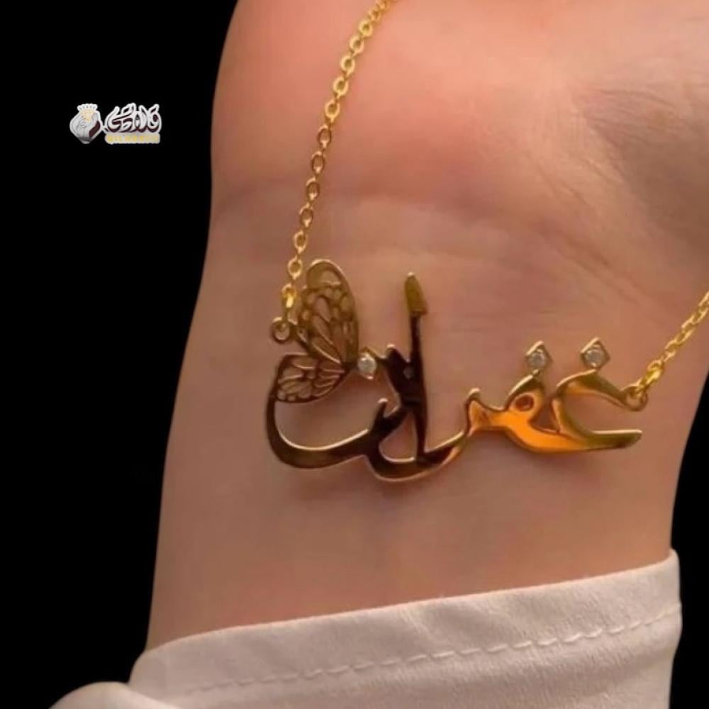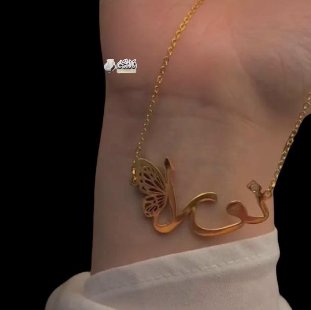قلادة فريدة تجمع بين الجمال والرمزية، مصممة بشكل نصف فراشة أنيق تحمل اسمك أو اسم من تحبين.