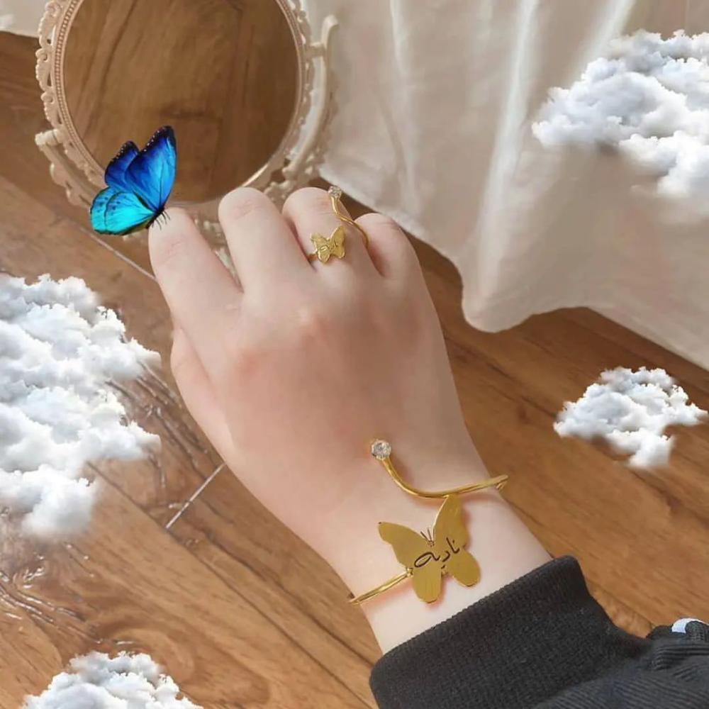 أجمل هدية نسائية خاتم واسوارة بالاسم فخمة بطلاء ذهب أو فضة