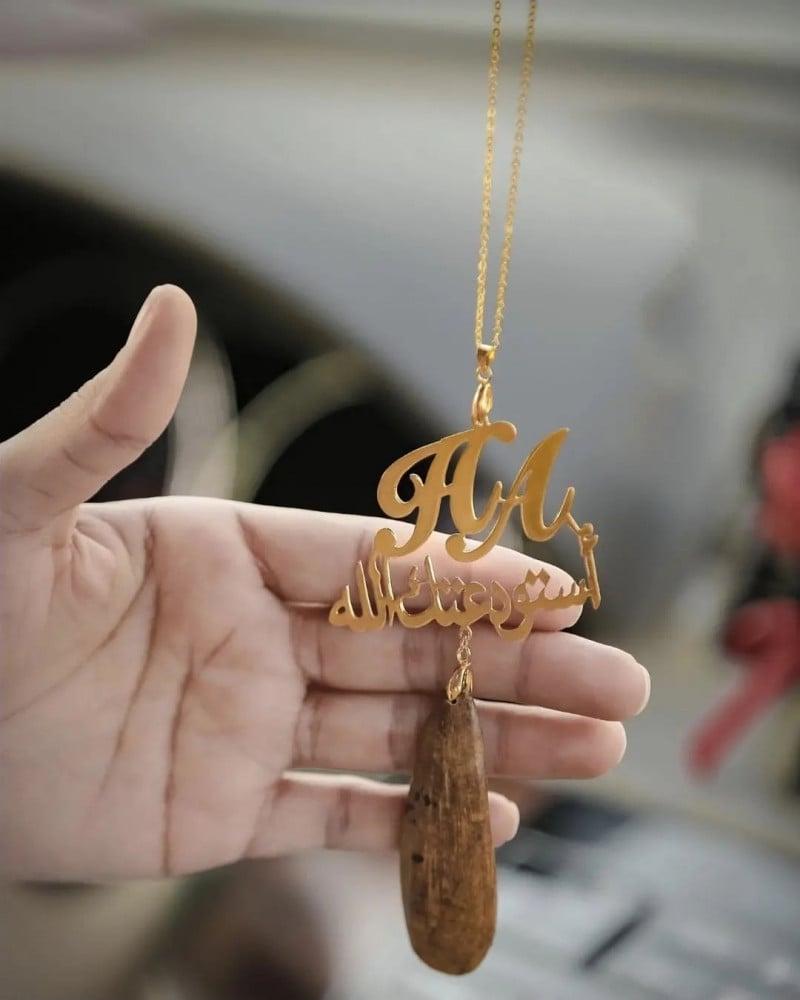 تعليقه سيارة بالاسم اللي تبيه حسب طلبك مطليه ذهب أو فضه