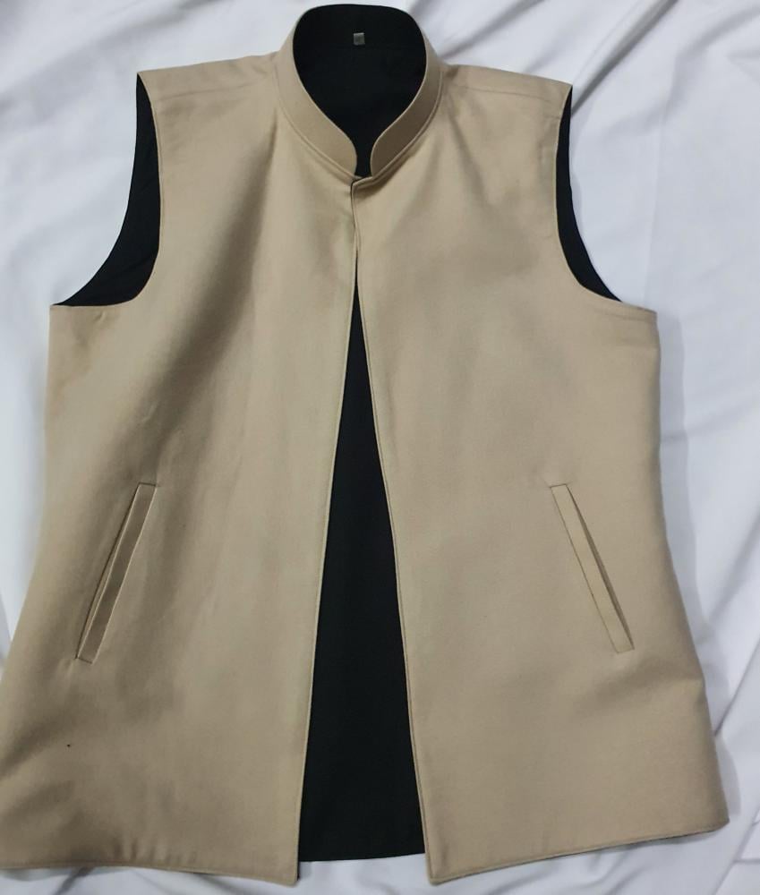 صديري رجالي شتوي رسمي جوخ لونين (بيج × أسود) – وجهين