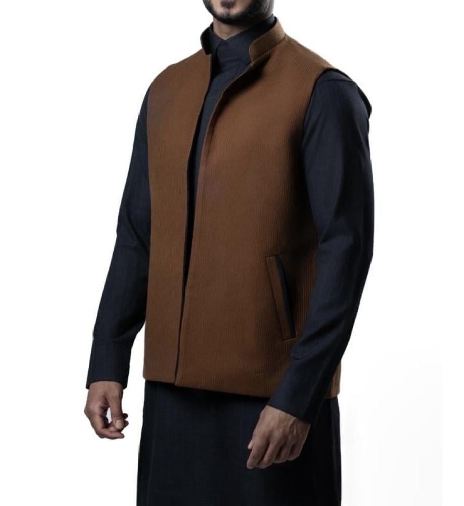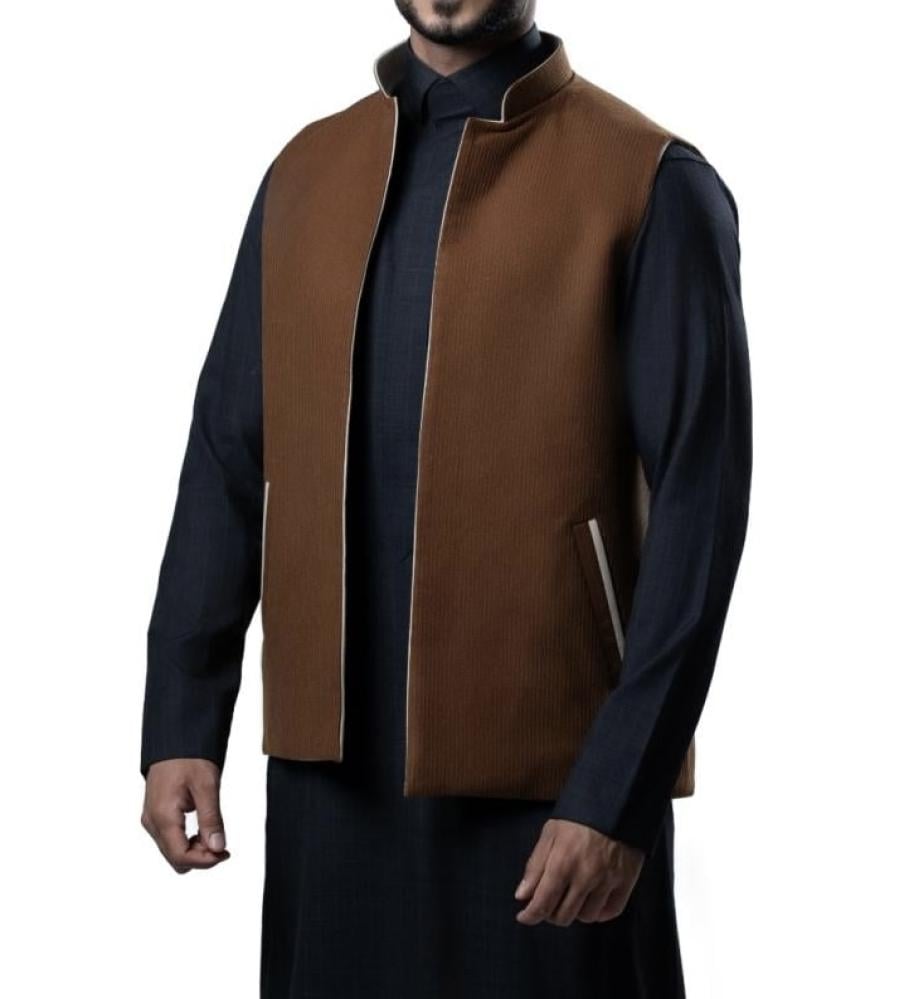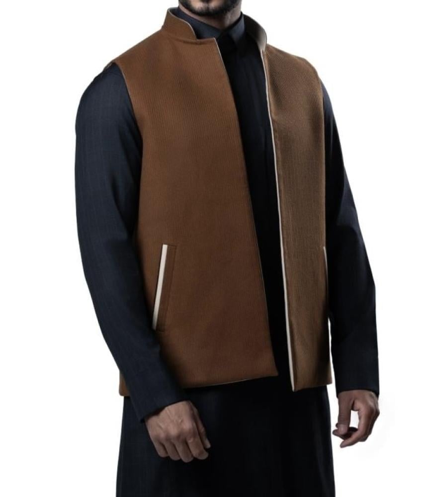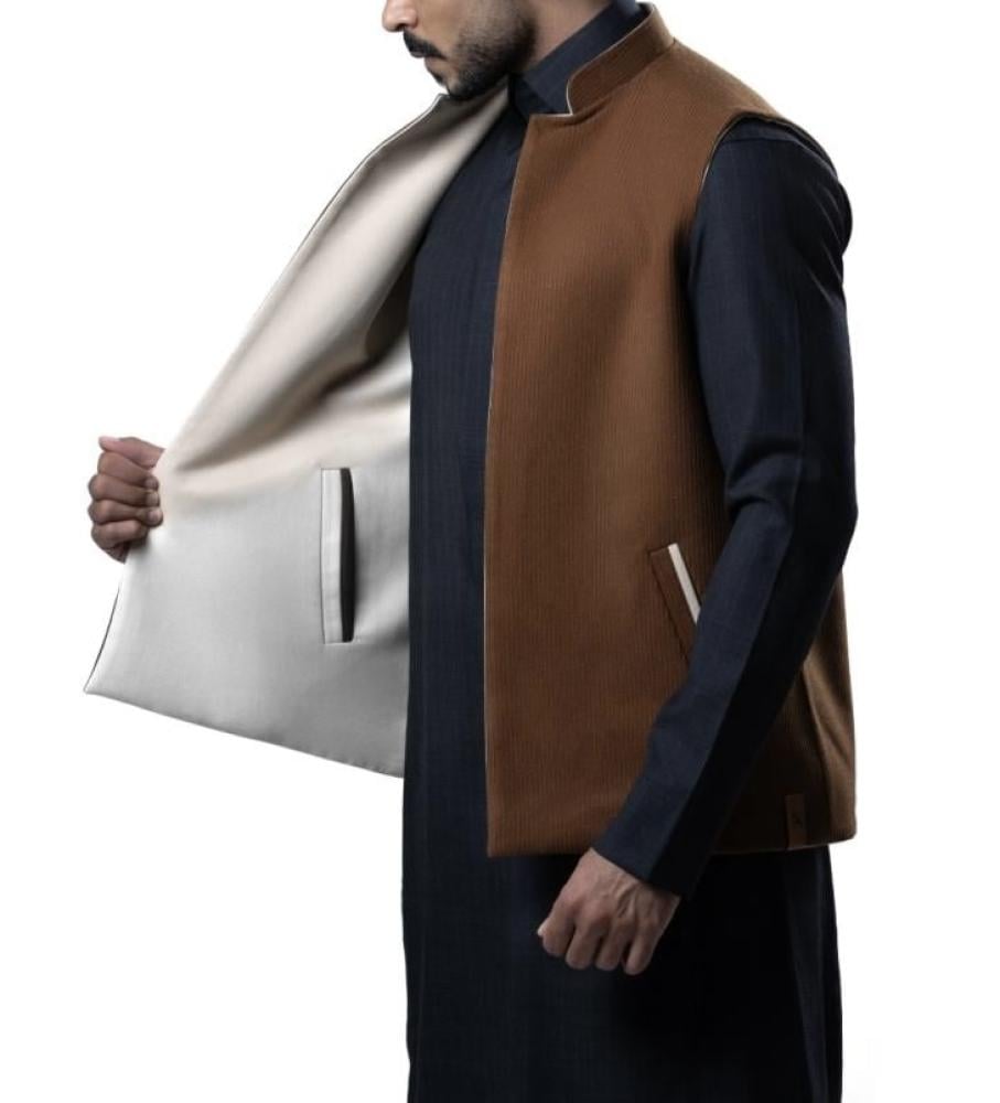 سديري رجالي فاخر من قماش الجوخ الناعم، بتصميم دبل فيس عملي يمكن ارتداؤه من الجهتين لتغيير الإطلالة بكل سهولة. يجمع بين اللون البني الترابي من جهة ولون بيج أنيق من الجهة الأخرى، مع جيوب جانبية تضيف لمسة عصرية عملية. قطعة أساسية تناسب المناسبات الرسمية والإطلالات اليومية بإطلالة راقية ومتجددة