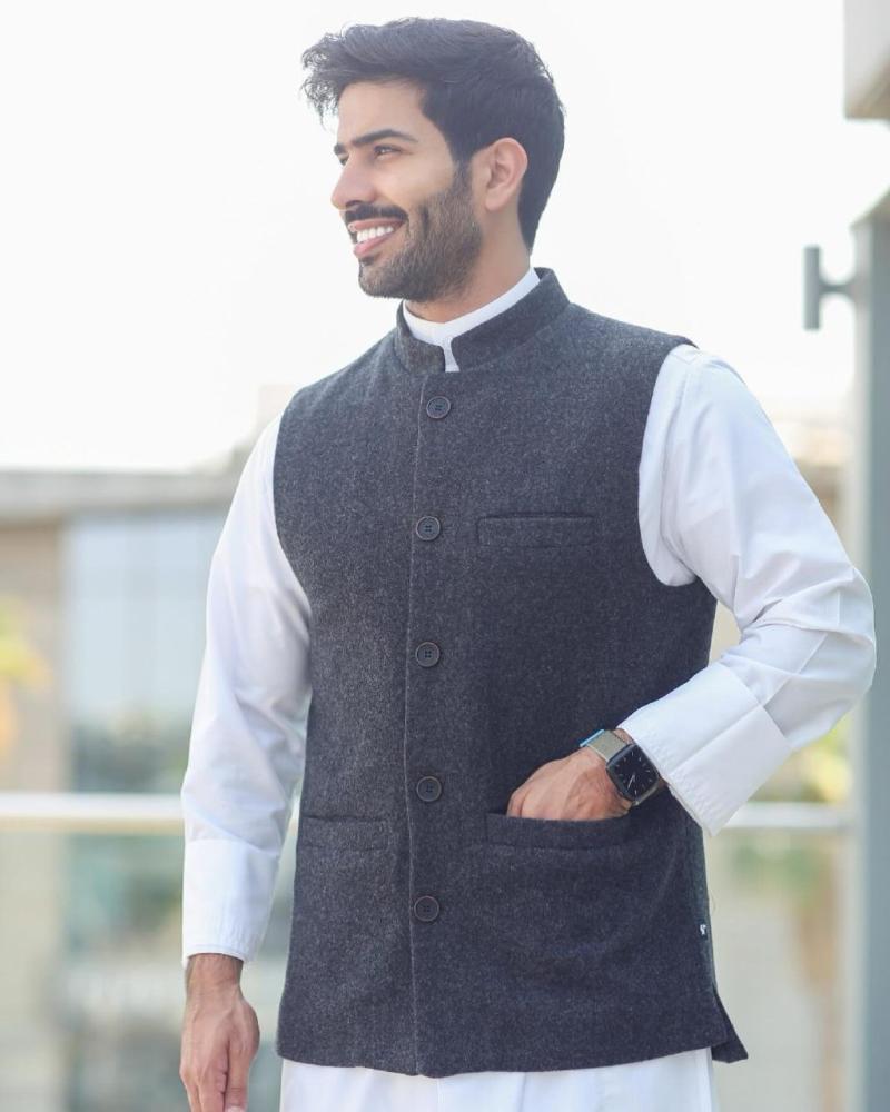 سديرية رجالية أنيقة مصنوعة من قماش الجوخ الفاخر لتمنحك دفئاً وأناقة في آنٍ واحد.