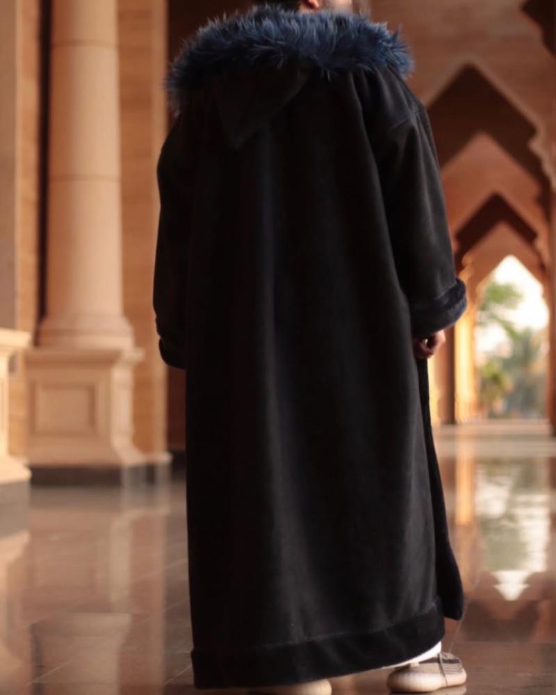 تميّز بإطلالة فاخرة ودافئة مع الفروة الشتوية السوداء بقبعة مزينة بفرو أزرق داكن يضفي لمسة أنيقة وعصرية. مصنوعة من قماش سميك عالي الجودة لتمنحك الدفء في الأجواء الباردة، مع تصميم واسع ومريح يناسب المناسبات والطلعات الشتوية. خيار مثالي يجمع بين الفخامة والتميز