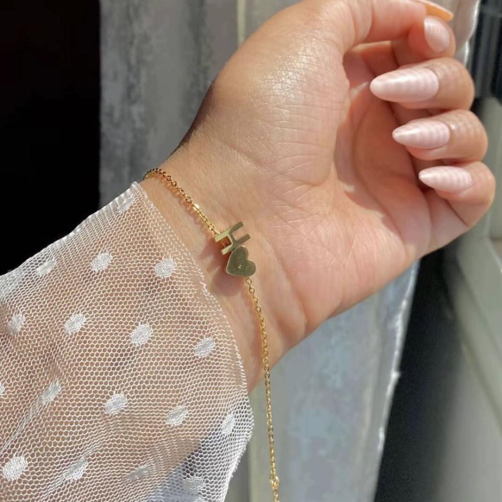 إسوارة الحرف والقلب من قلادتي بتصميم ناعم يجمع بين حرفك المميز وقلب ذهبي يعكس الرقة والمشاعر الجميلة.